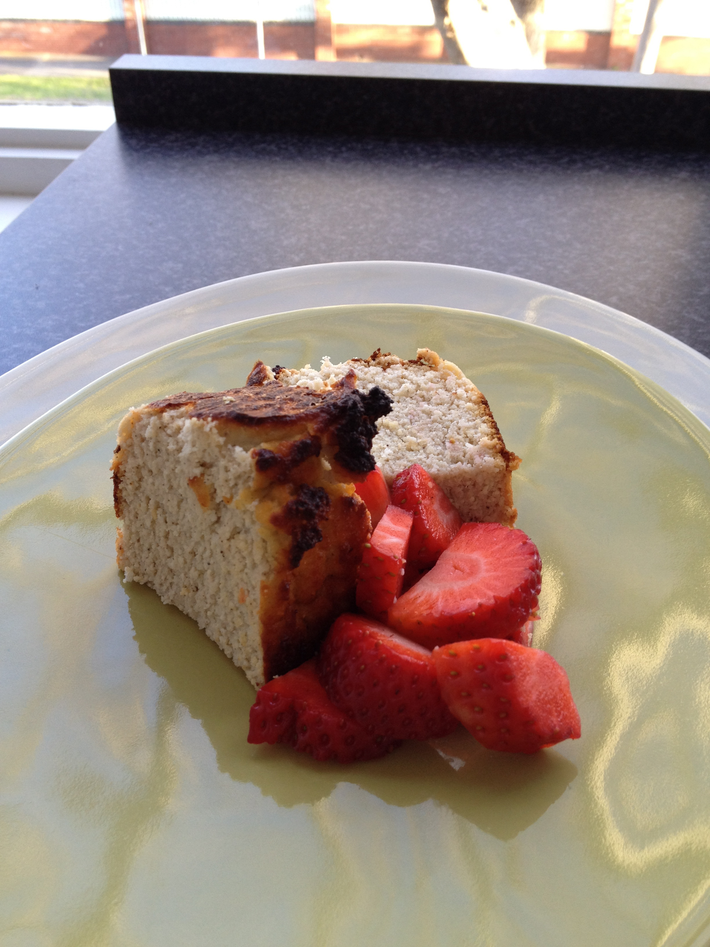 It’s so moist and light – we had it with fresh strawberries and a drizzle of maple syrup – what a treat 🙂