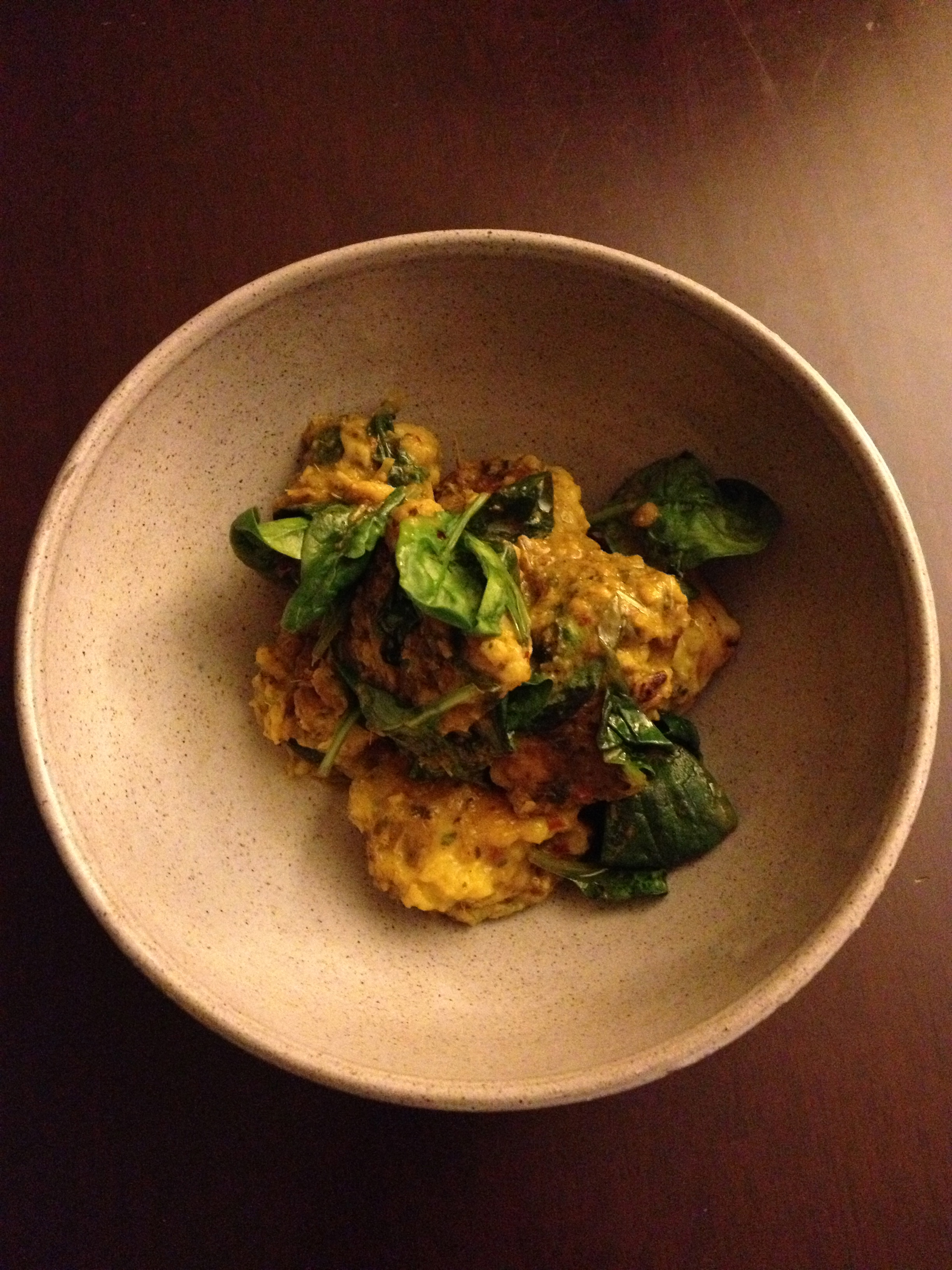 Turn them once so they are covered in the sauce and toss in one large handful of spinach leaves and cover again for five minutes.