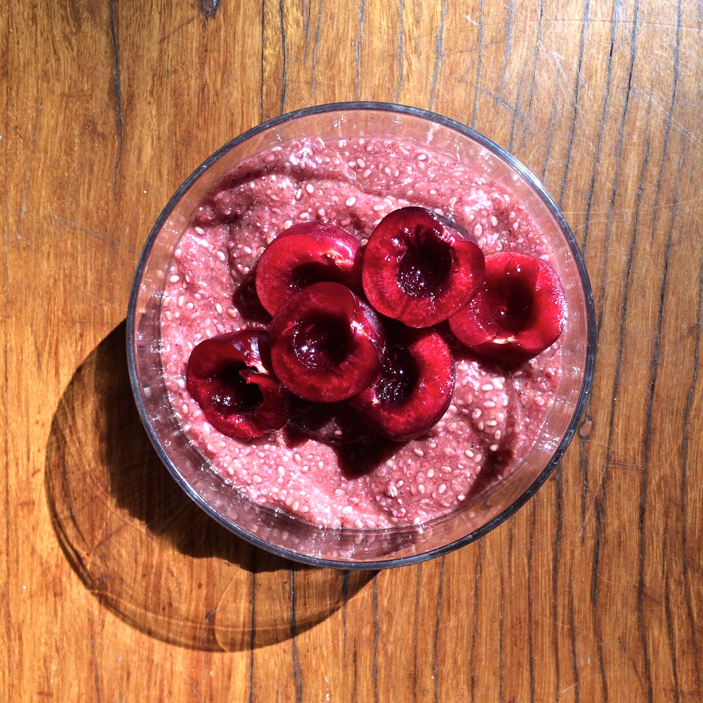 This little pudding is a wonderfully simple addition to your repertoire for fruity fun anytime of the year. The pudding is made from frozen cherries, so you could use any frozen berries you have – make this one your own! Garnish with fresh fruit or a dollop of nut cream!