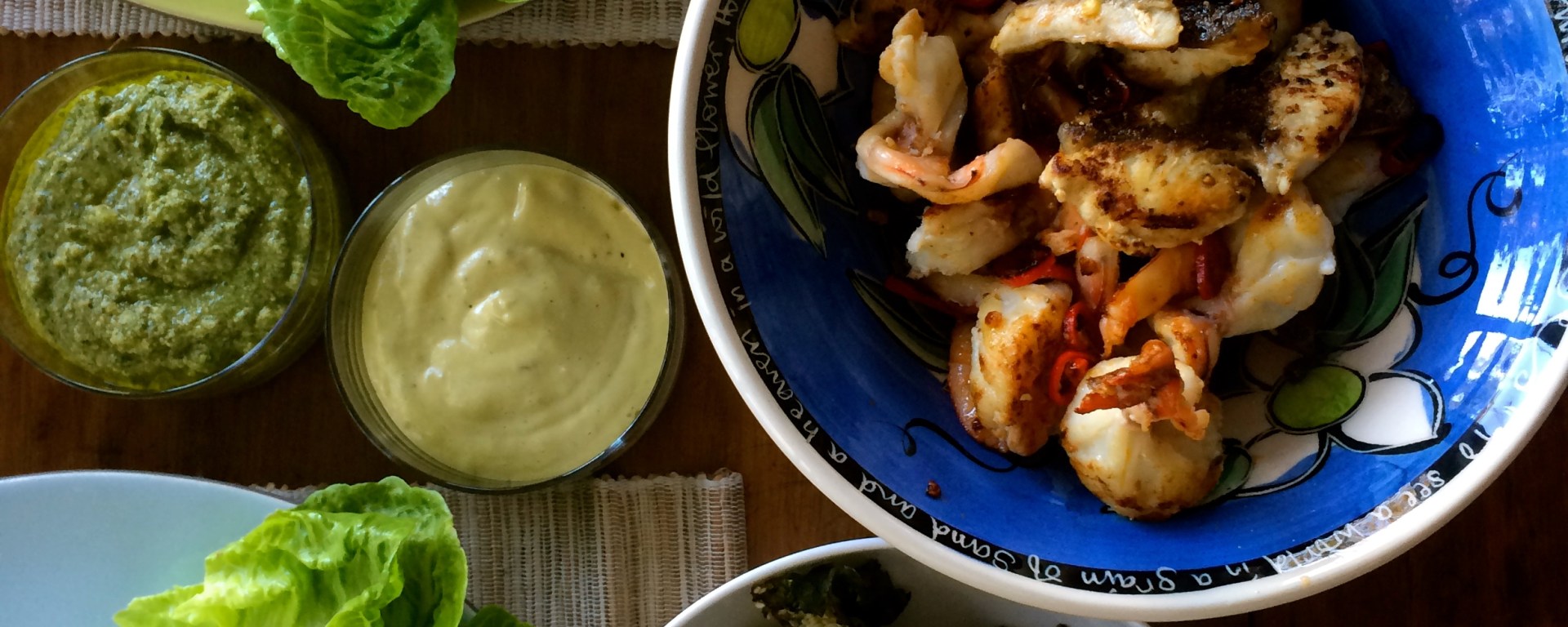 Serve with Mint & Macadamia Pesto and fresh lettuce leaves … mmmmmm