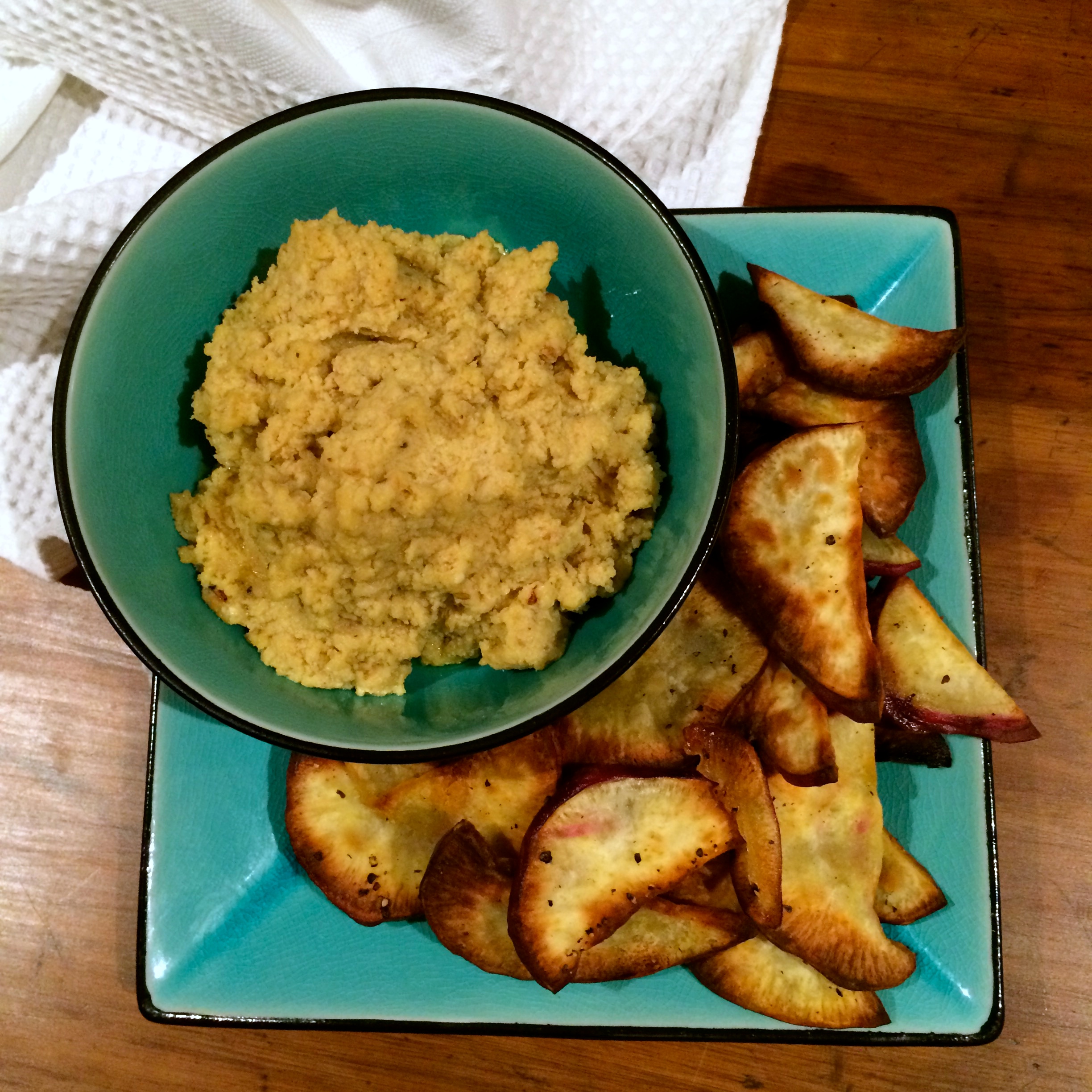 I love to make my own hummus, it’s much simpler than you think and takes no time at all. You can flavour it how ever you like it once you know the basic recipe! This little number was served with home-made purple skinned sweet potato chips. Try it, it will totally change your life forever …