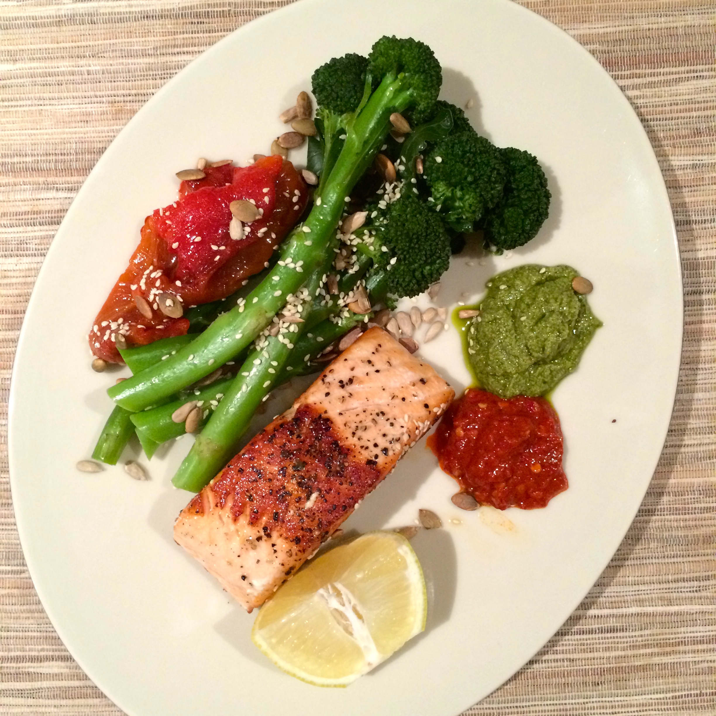 Making a little dinner picnic is my favourite way of eating. Usually, there is a batch of pesto, toasted seeds or roast some peppers ready to go, so all that’s needed is a protein and a green vegetable and it makes a meal an absolute delight!