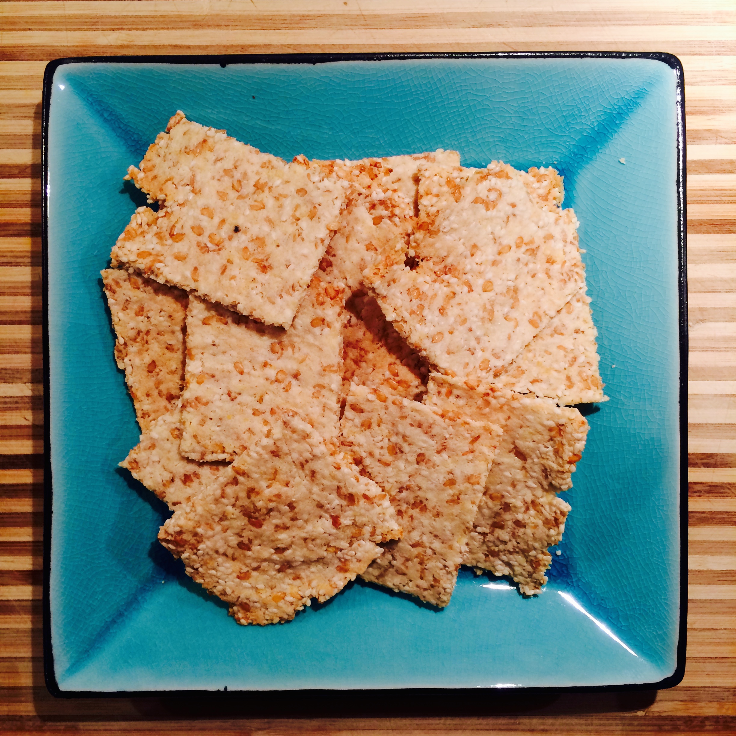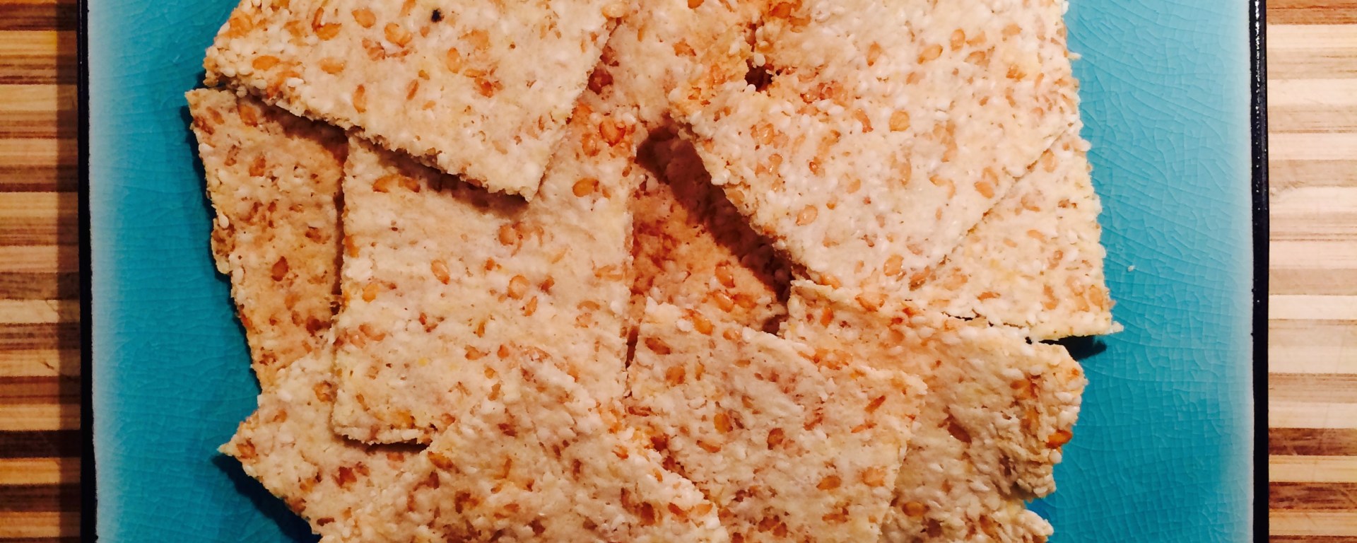 These almond and sesame crackers are light, crunchy and absolutely the simplest crackers to make. Great to get the kids cooking!! Just add your favourite dried herbs for a savoury flavour.