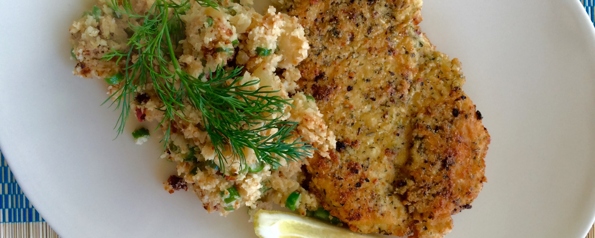 While the ‘rice’ is cooking, prepare the schnitzel.