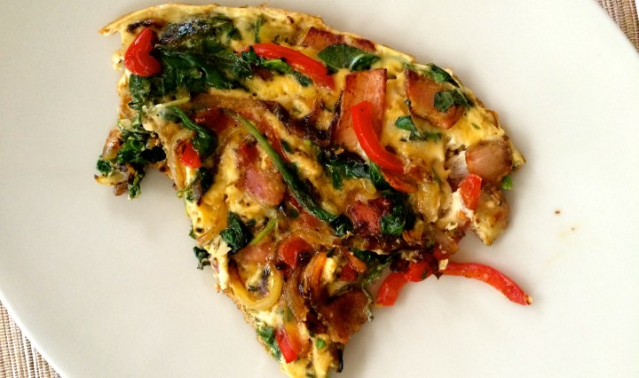 Tasty, quick and delicious bacon and herb frittata for breakfast, lunch or dinner! Ingredients: 1 brown onion, sliced 2 long rashers of bacon, sliced ½ red capsicum (pepper), sliced 6 eggs, beaten ½ cup water 1 clove garlic, finely chopped … Continue reading Bacon & Herb Frittata